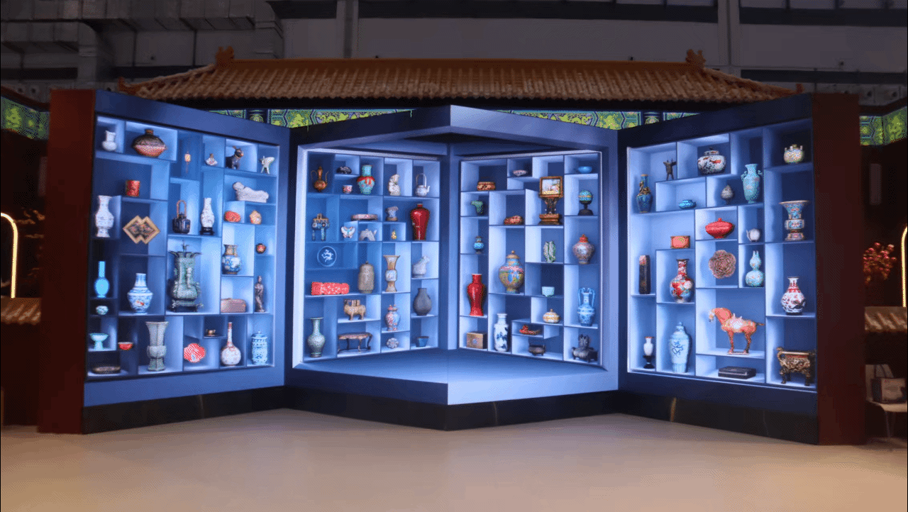 该展项以“故宫色彩”为核心主题,精选六件具有典型色彩、纹样、形态的院藏文物,借助裸眼3D技术,让静态的色彩与纹样“动”起来。观众轻触多宝盒这一互动装置,内置传感器会通过检测心率感知情绪,进而匹配文物在屏幕上演绎,让当下的情感思绪,与文物产生跨越时空的联结与共鸣。