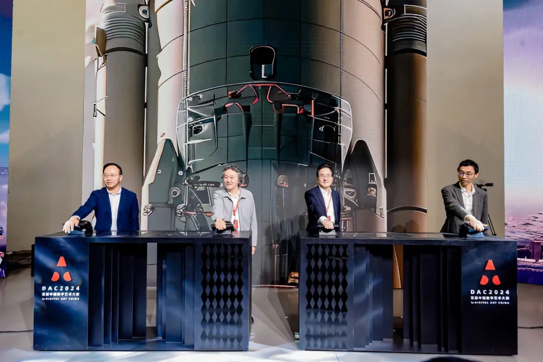 杭州市政府党组成员、副市长陈卫强,中国美术家协会分党组书记、驻会副主席、首届中国数字艺术大展组委会主任马锋辉,浙江省文联党组书记、副主席、书记处常务书记杨守卫,中国美术学院党委书记金一斌共同为展览启幕。中国美术家协会副主席、浙江省美协主席、中国美术学院院长、首届中国数字艺术大展组委会主任高世名作开幕讲话。北京奥运会、冬奥会美术总监、中国美院AI中心主任陈岩作为中国数字艺术大展艺委会专家代表致辞。