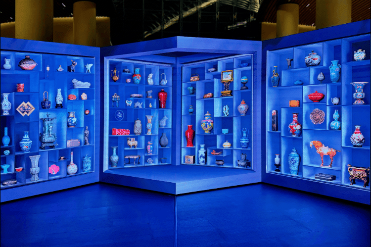 展项以“故宫色彩”为核心脉络,精选6件院藏国宝文物,通过裸眼3D技术唤醒文物色彩生命力,诠释其深层纹样内涵。