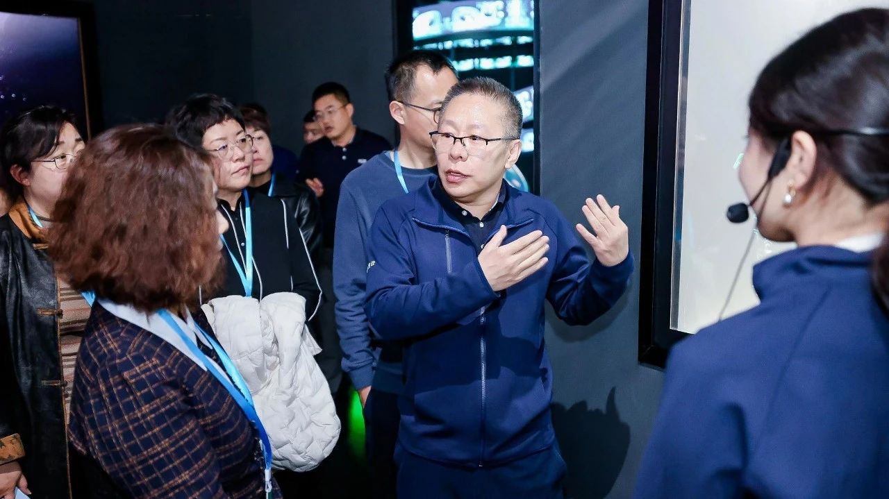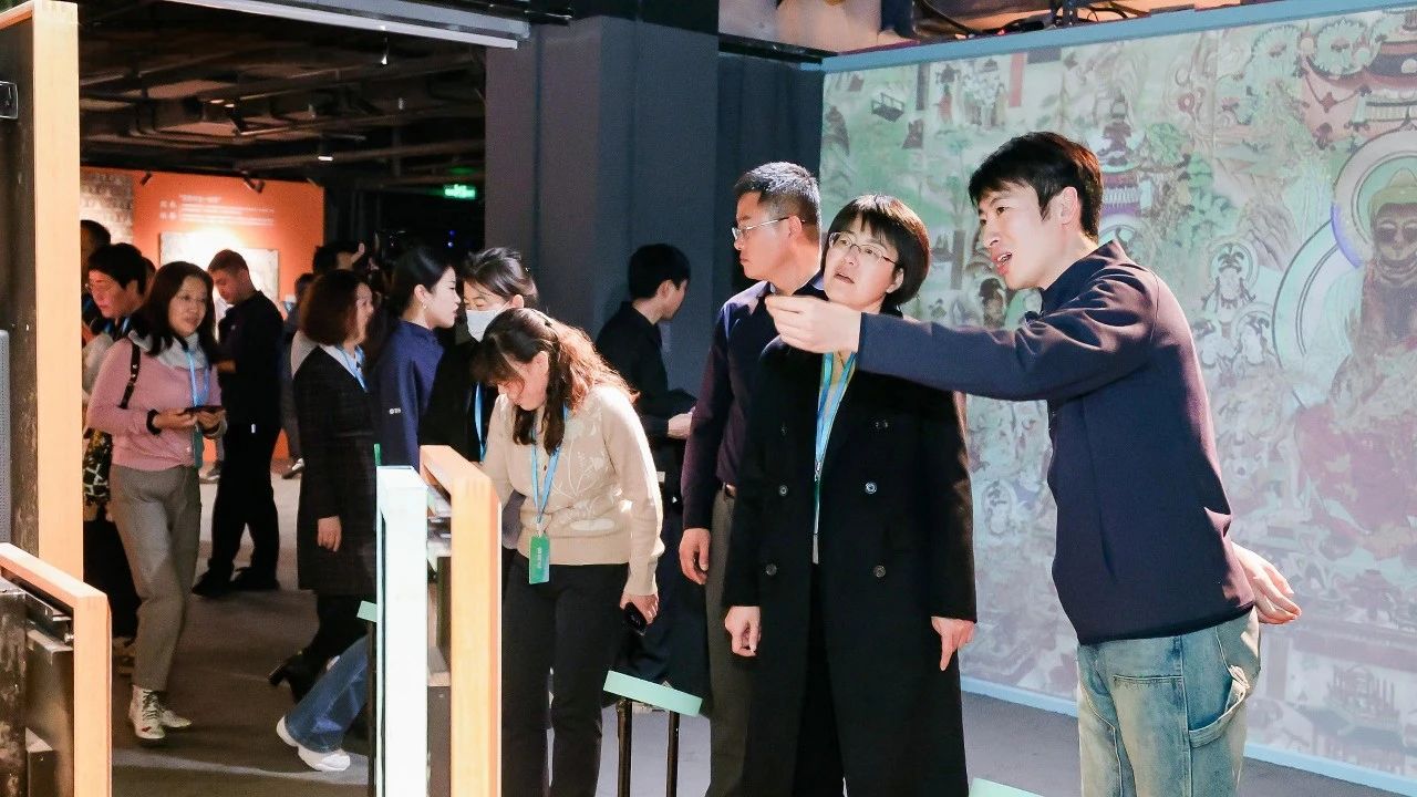 艺云科技总裁白峰、艺云科技智慧校园事业部总经理李慧军、艺云数字艺术中心总馆长王斌等领导陪同参访团,沉浸式体验艺云科技集数字展览、科普研学、数字文创等为一体的研学新场景,同商校企合作新路径,共话教育大未来。