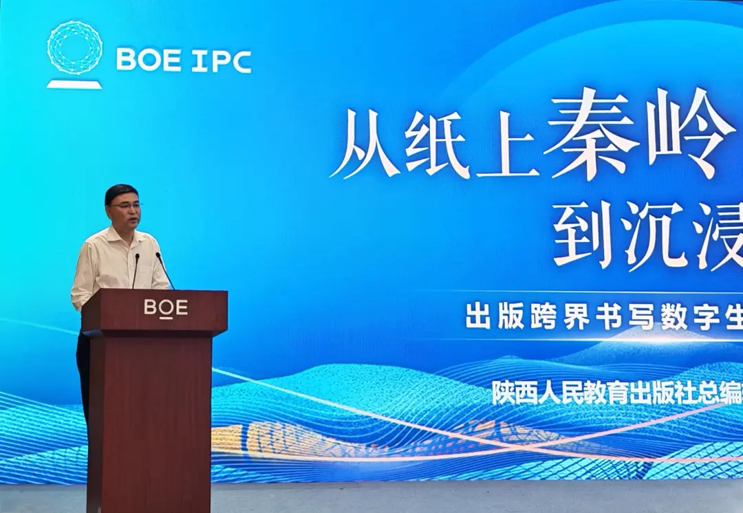 陕西人民教育出版社总编辑叶峰分享出版跨界文旅探索,介绍“秦岭来了”生态数字科普展以出版内容为基石、数字技术为引擎,构建沉浸式体验空间,对践行生态文明思想、推动出版融合、赋能科普教育、打造文化IP有重要意义。