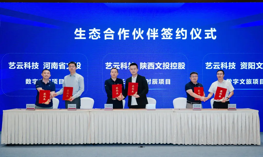 艺云科技分别与苏州博物馆、云冈研究院、陕西人民教育出版社签约,针对馆藏文化、文物保护、教育内容等领域的文化IP开展科技化开发与传播;与河南省文化产业投资有限责任公司、陕西文旅控股有限公司、资阳文化旅游发展集团有限公司签约,在文旅资源开发、文创产品打造等领域深度联动;与大连博涛文化科技股份有限公司、中国电子国际经济合作公司、瑞安市融媒体中心、京彩石榴籽(北京)文化科技有限责任公司签约,在科技研发、国际合作、传媒传播、文化创作等领域跨界联动;与北教智学数据科技(北京)有限公司、大理州医投管理有限公司、四川省妇女儿童中心签约,开展多维度创新合作。