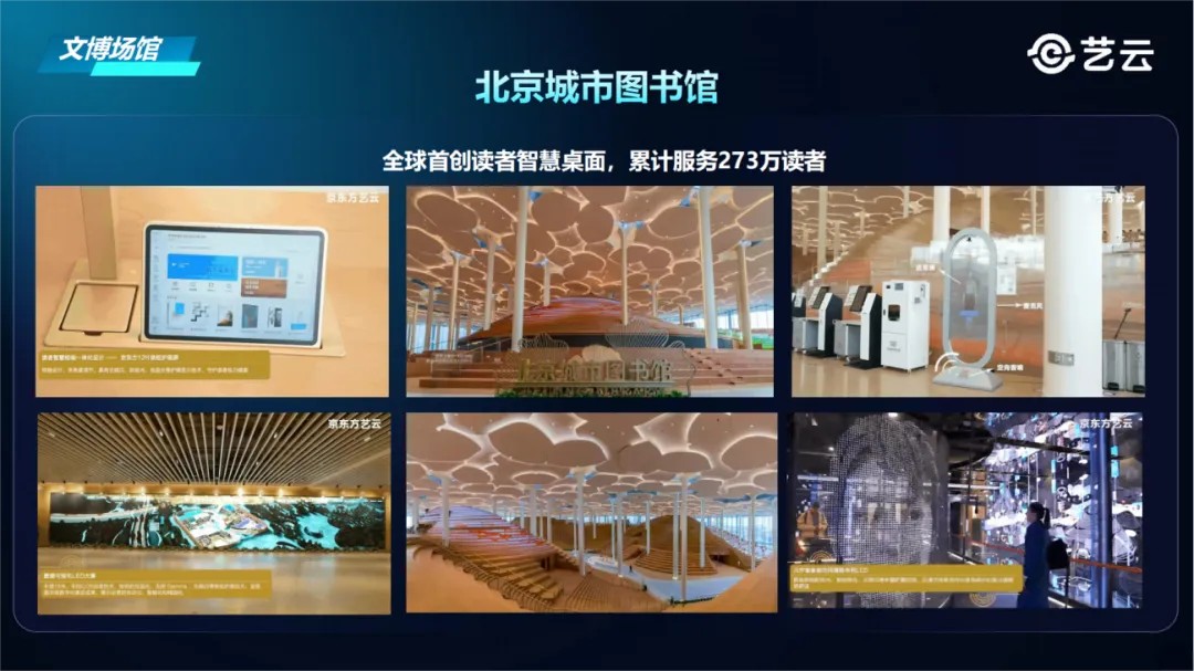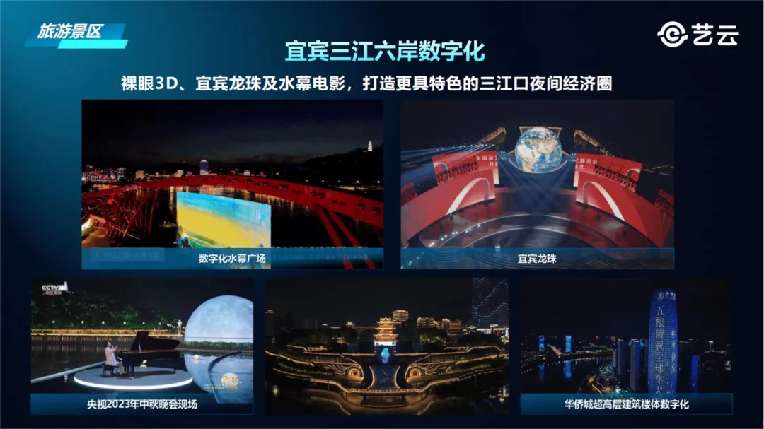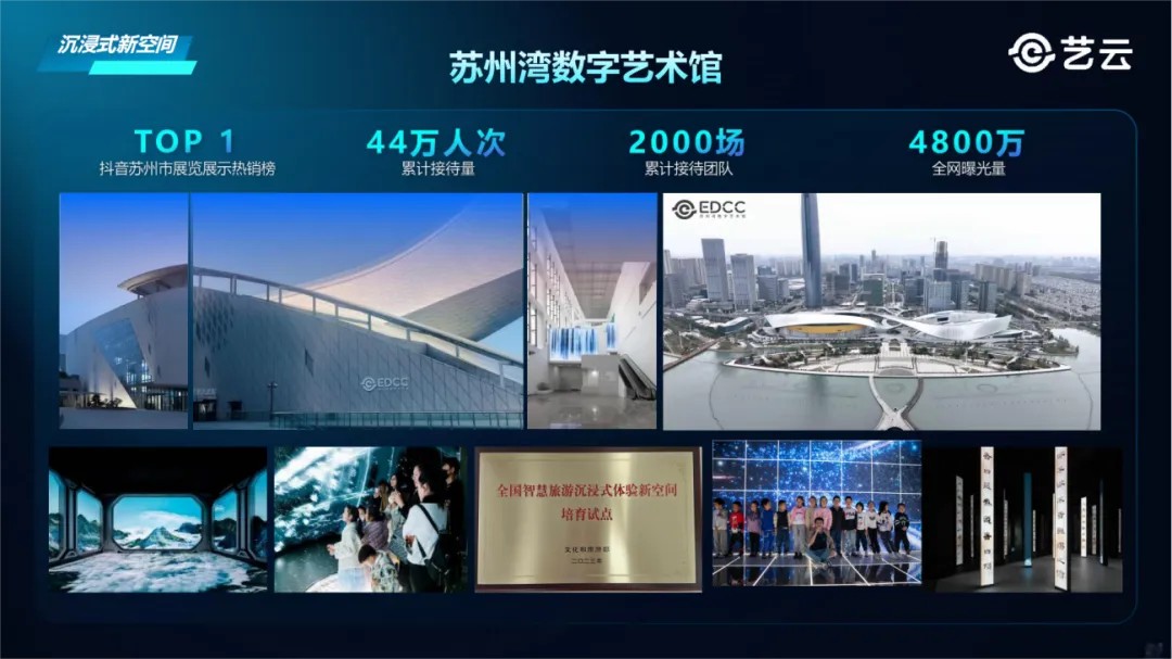 依托四项创新举措,艺云科技正在实施“百万数字文化体验场景计划”。当前,已助力文博机构及各类空间,打造了超过40万个数字文化体验场景。围绕城市更新、旅游景区、休闲街区、文博场馆、交旅融合和沉浸式新空间等多元化场景,推出众多标杆项目。