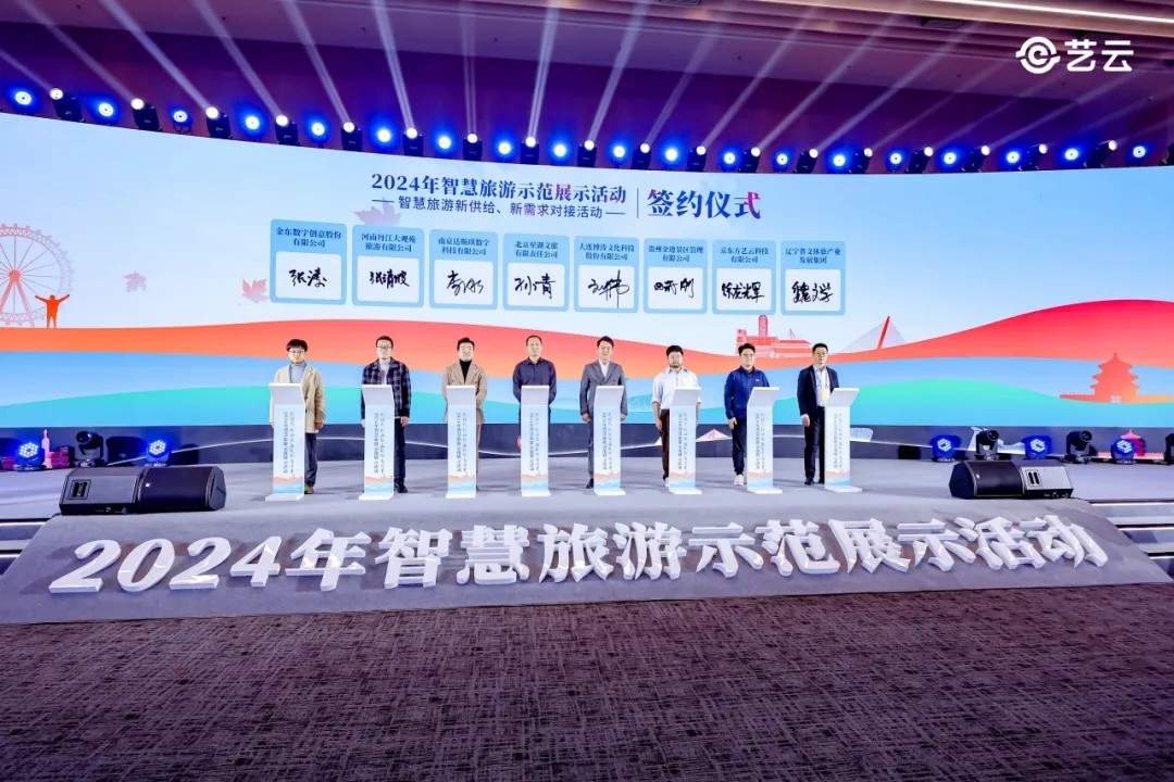 在智慧旅游新供给、新需求对接活动中,辽宁省省属大型国有企业集团辽宁省文体旅产业发展集团副总经理魏文学与艺云科技辽宁基地总经理徐龙辉,同台签署“辽宁省文体旅商产融合发展”战略合作协议。签约后,双方将以“醉·辽宁”为核心主题,深入开展沉浸式数字艺术和辽优品数字IP开发合作,共建东北亚灯塔级项目,为东北振兴增添新质生产力,为辽宁“山海有情、天辽地宁”注入科技新活力。