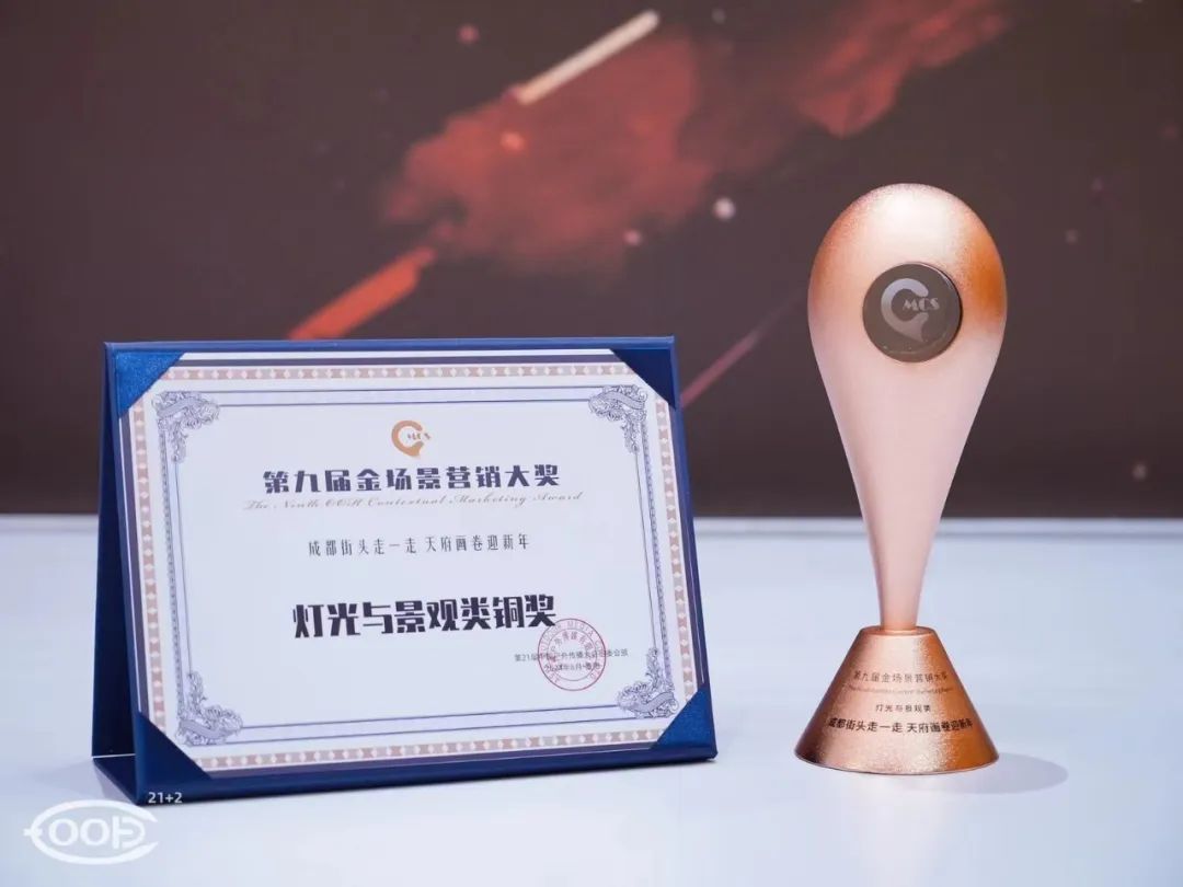 28号下午,户外广告界权威评选活动“金场景营销案例评选”举行。“天府大屋檐”凭借除夕活动“成都街头走一走,天府画卷过新年”荣获第21届中国户外传播大会《第九届金场景营销大奖-铜奖》,该视频在春节播放期间火爆全网,获得上亿级的点赞、评论及转发。同时,“天府大屋檐”获得《中国城市地标媒体》大奖,这意味着“天府大屋檐”已具备强大的广告势能,是户外地标媒体的又一风向标。