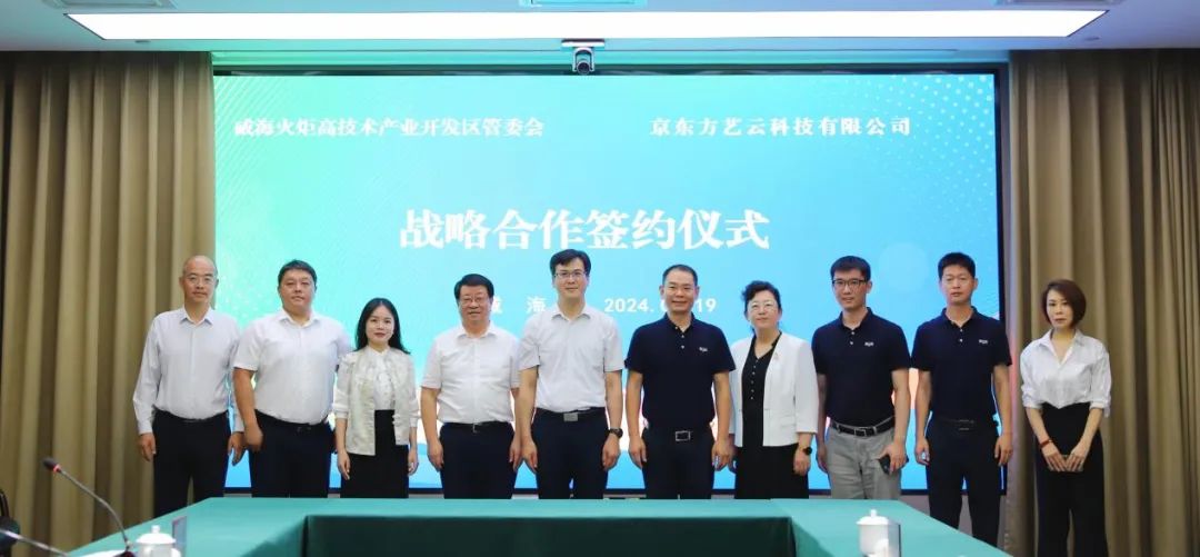 7月19日,艺云科技与威海火炬高技术产业开发区(以下简称“威海高区”)管委会在威海签署战略合作协议。威海市人民政府副市长张善东,威海高区党工委书记、管委会主任梅延良,威海高区党工委委员、管委会副主任沈燕萍,京东方科技集团执行副总裁、艺云科技董事长姚项军,艺云科技副总裁、威海基地总经理郑悦等出席仪式。