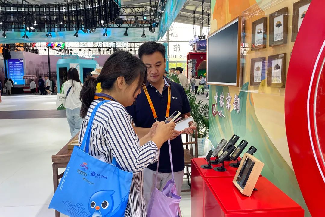 EDCC数字手机壳和裸眼3D相框,凭借其独特的新颖性,在展会上成功赢得了参会者的青睐。融合四色墨水屏与NFC技术的数字手机壳,通过“EDCC探艺”APP,用户可轻松更换官方美图或DIY创作作品,实现手机壳时时换新。裸眼3D相框则与同展区的工美艺术品形成了联动,为观众带来了多元化的欣赏体验。