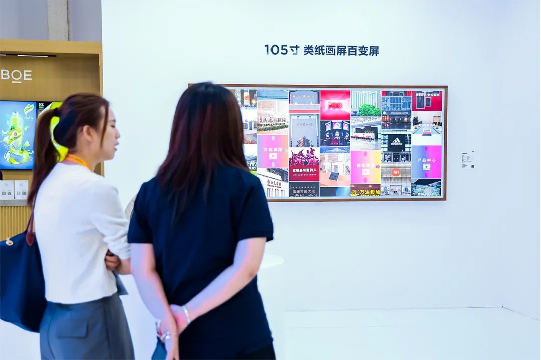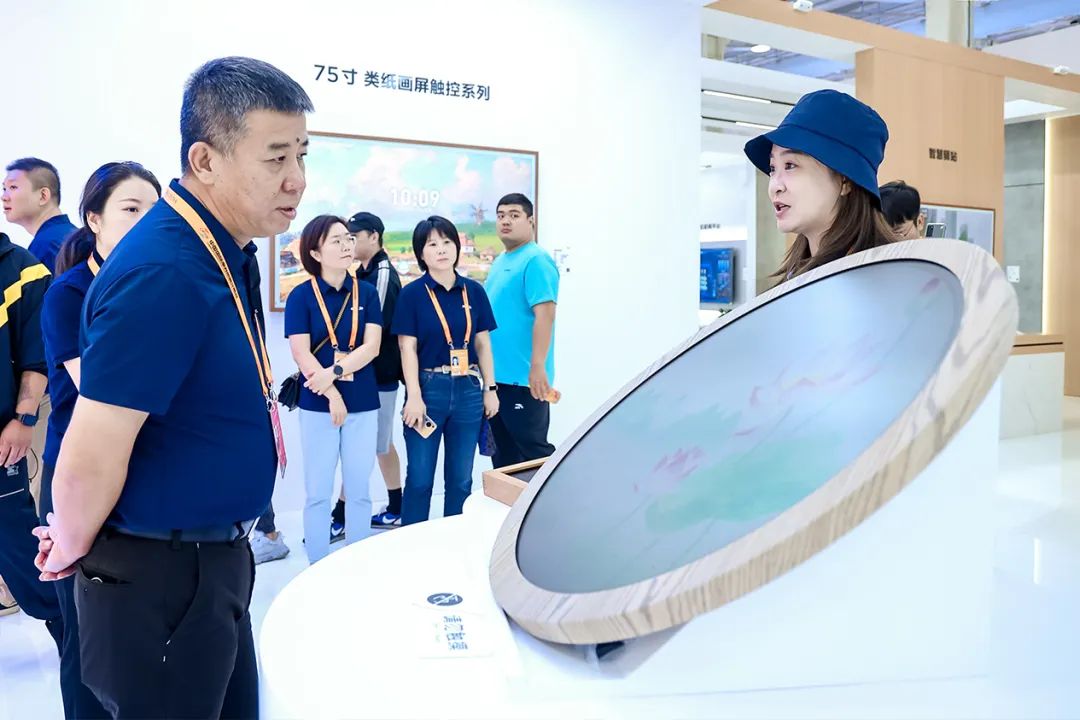 云画屏类纸显示产品凭借强互动、数字化的表达方式,在文化展陈展区中大放异彩,深受参观者喜爱。其中,多尺寸类纸画屏墙通过多屏联动软件,能轻松实现单一场景多主题快速切换;105吋5K超高清百变屏则搭载先进系统,拥有分区互动、视频播放、多点触控等功能,让用户有了前所未有的数字化新体验。此外,创意显示系列产品如方屏、圆屏等,则能满足不同展陈空间的展示需求。