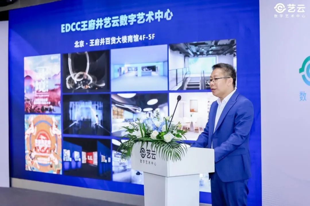 艺云科技总裁白峰在致辞中表示:“今天落成的数字艺术中心(王府井),是我们首座2.0版数字艺术中心。该中心以文化和科技融合为创新内核,融合数字展览、科普研学、数字文创、联盟基地、艺术咖啡等功能,旨在打造‘文旅商产’融合的消费新场景和创新策源地。”